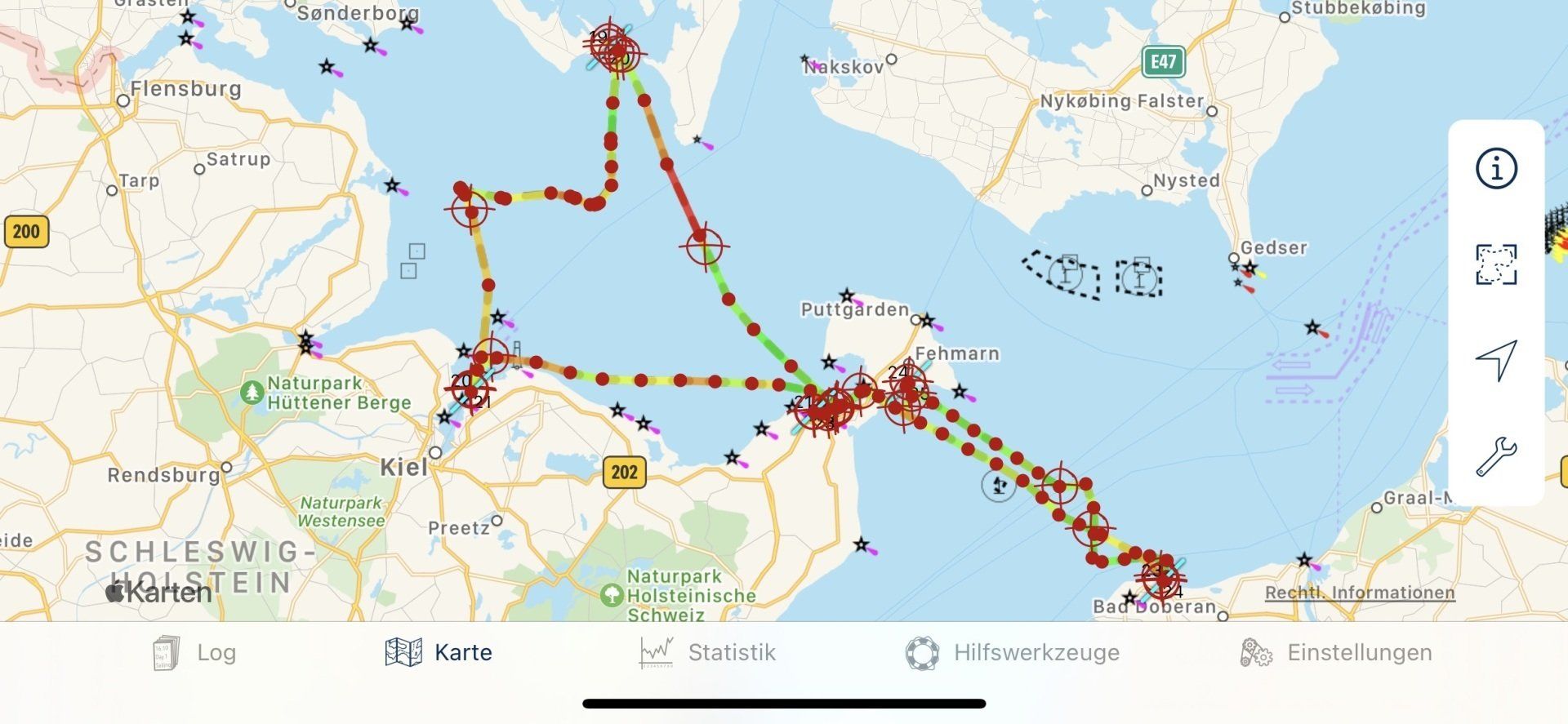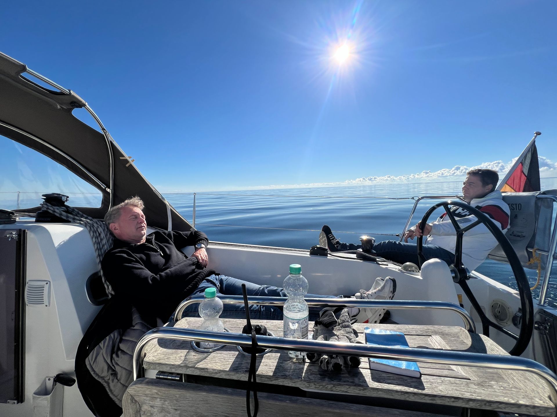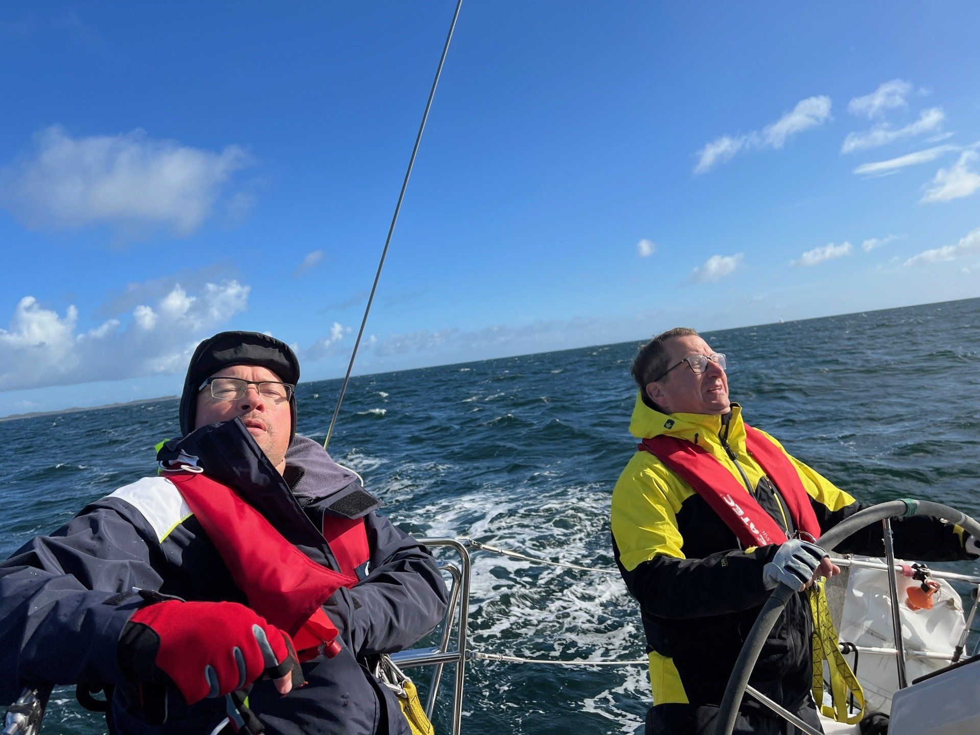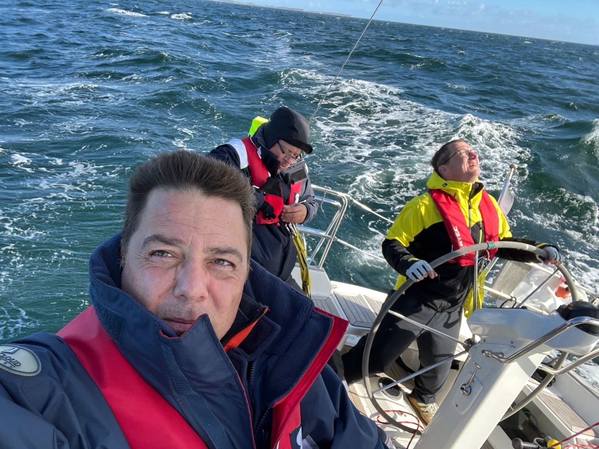 Ordentlich Wind am ersten Tag. Flaute an Tag 2 und 3. Toller Wind zurFahrt nach Flensburg von Wackerballig! 3 Schweinswale haben wir beobachten können. Sonst: Sonne, Sonne, Sonne!