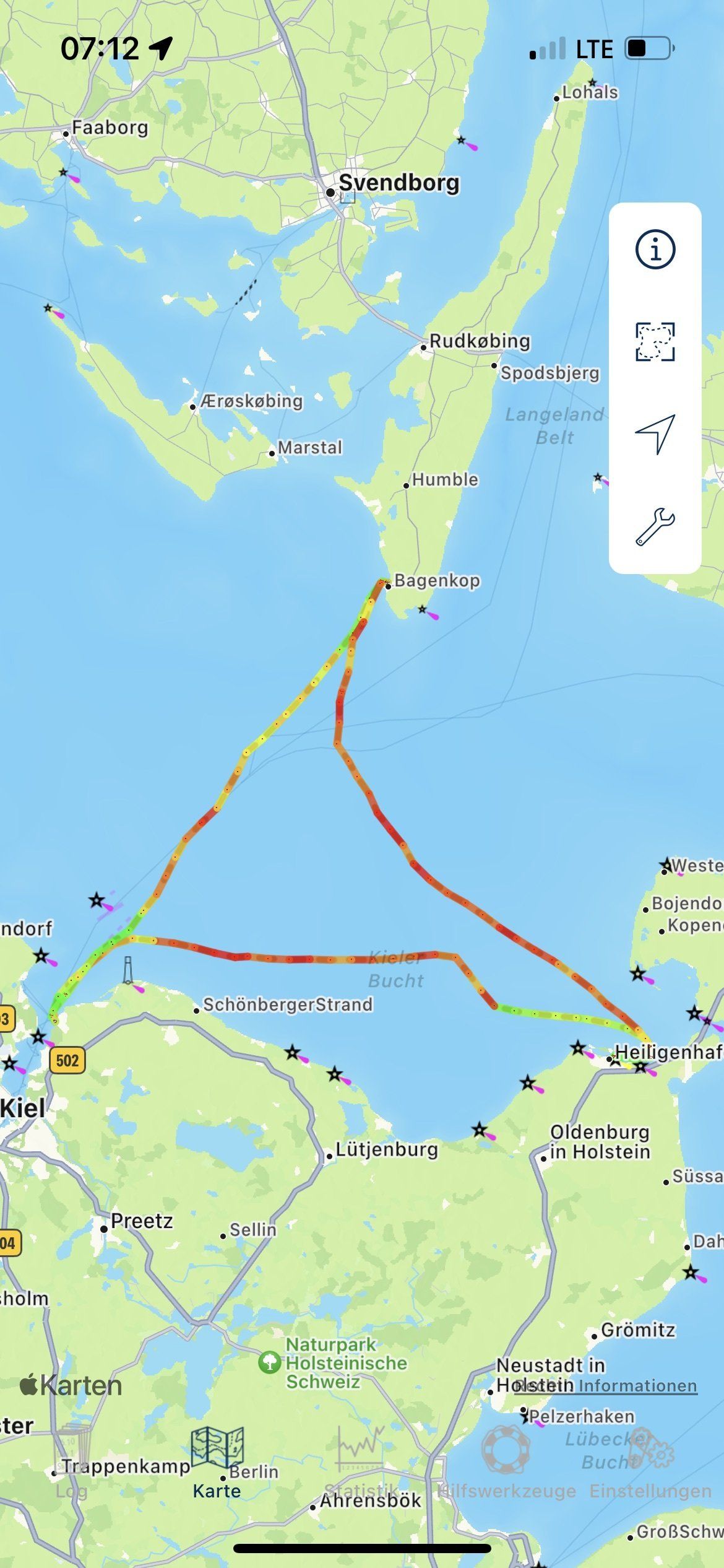 Drei Tage Törn nach Marstal und Laboe bei intensivem Wetter. Dann drei Tage Einhand nach Kühlungsborn, Burgtiefe und zurück nach Heiligenhafen